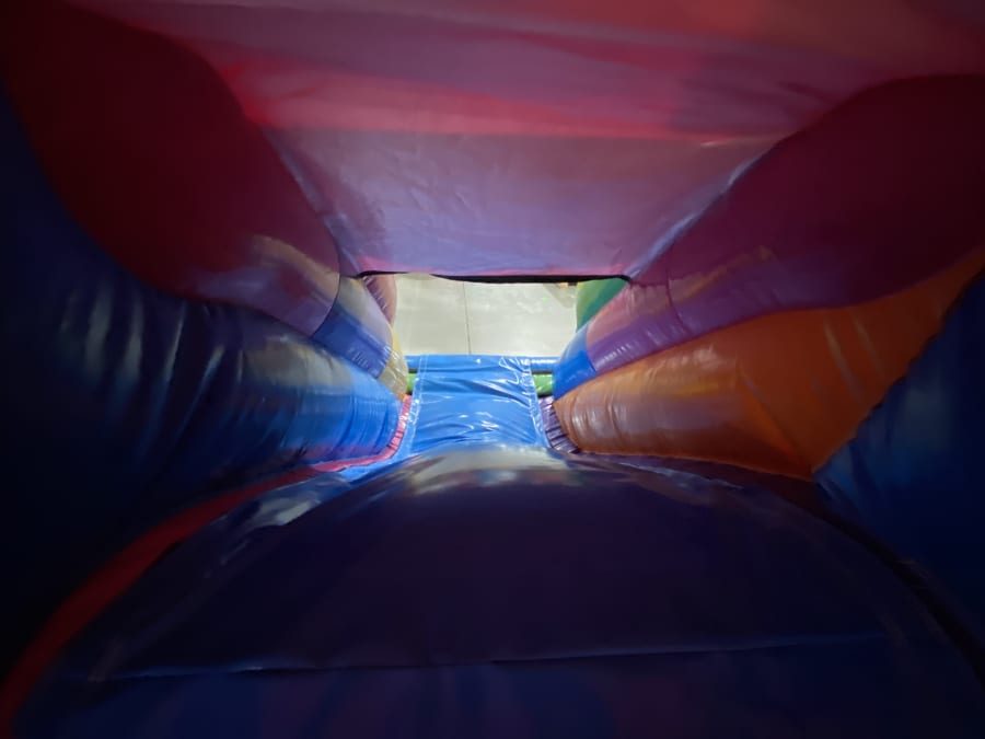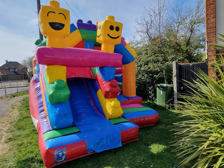 This bouncy castle is not just any inflatable—it’s a magical world where children’s imaginations can run wild. With its eye-catching colours and playful brick-head designs, it’s the perfect blend of creativity and entertainment. The slippy front slide adds an extra thrill, encouraging active play and social interaction among children. 🌈